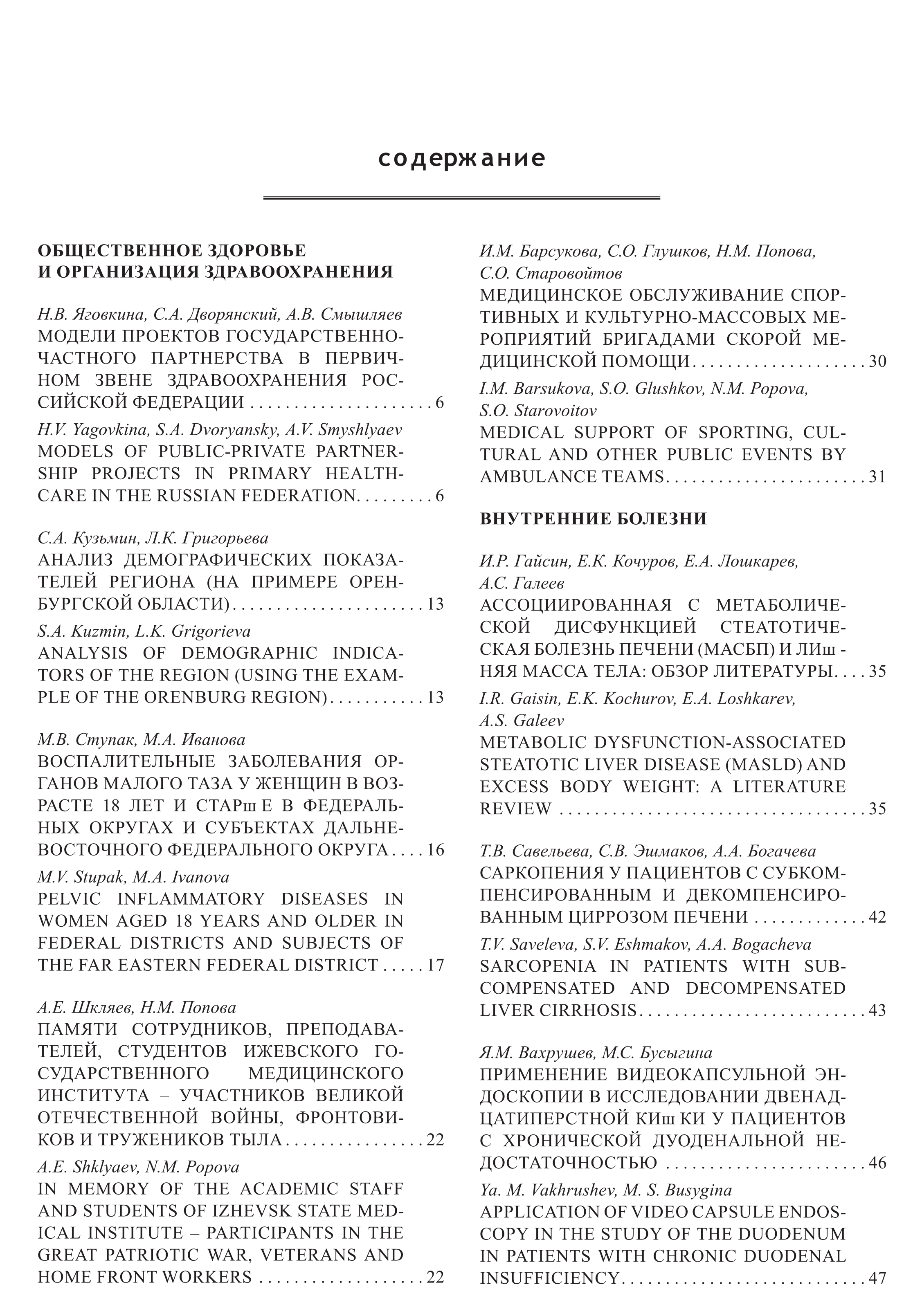 Оглавление номера